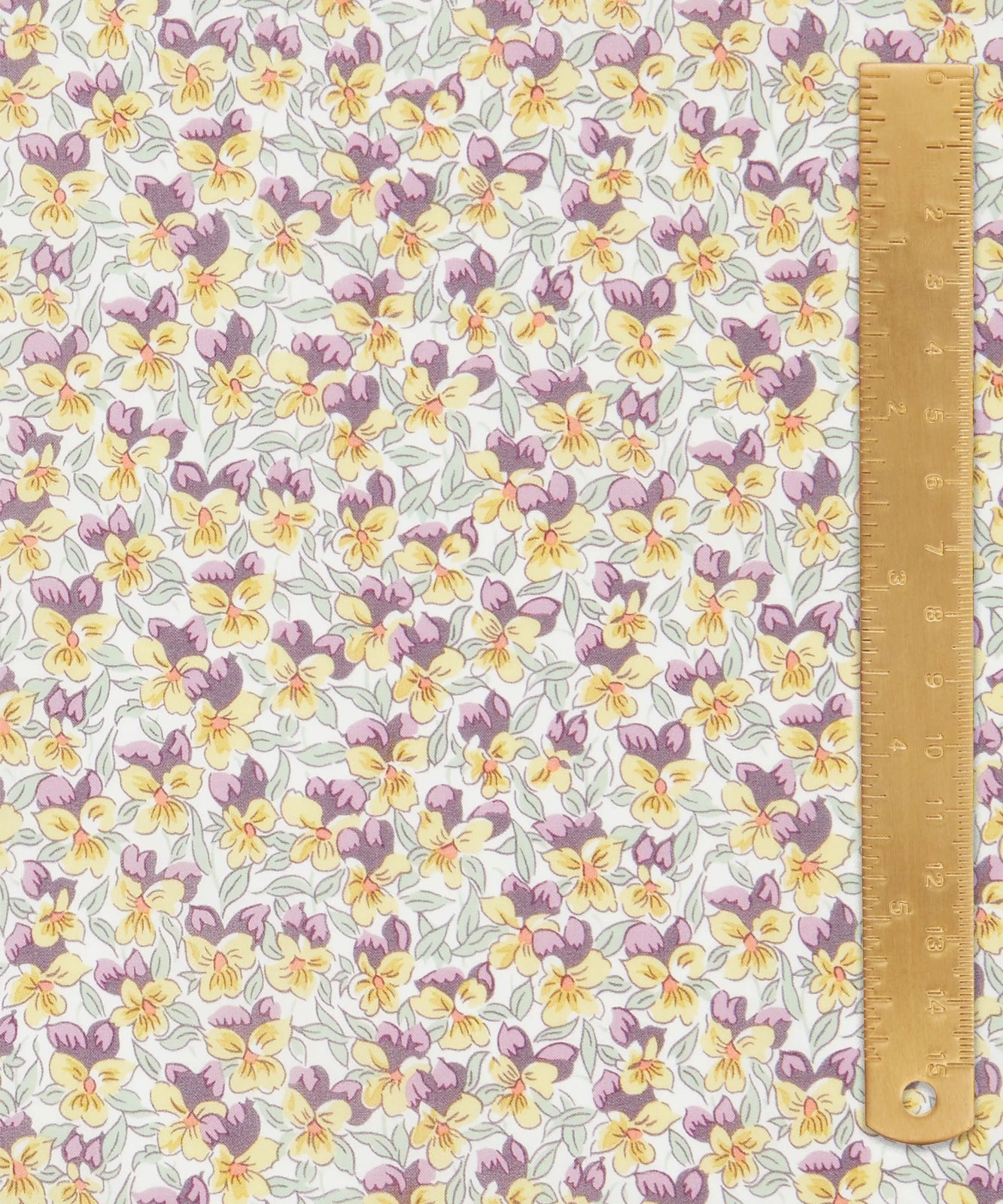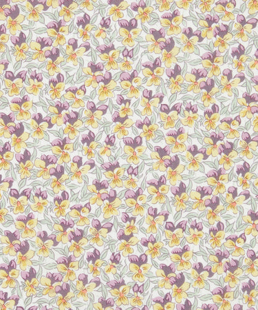 Hand-painted for Liberty in 1992, this densely packed botanical is an artistic representation of a blossoming floral canopy. Rendered with simplified brushstrokes, a chorus of dancing pansies showcases an expressive display of colour tonalities and textures. When viewed from a distance, the distinct flower petals appear to merge into a mesmerising, abstract mosaic.