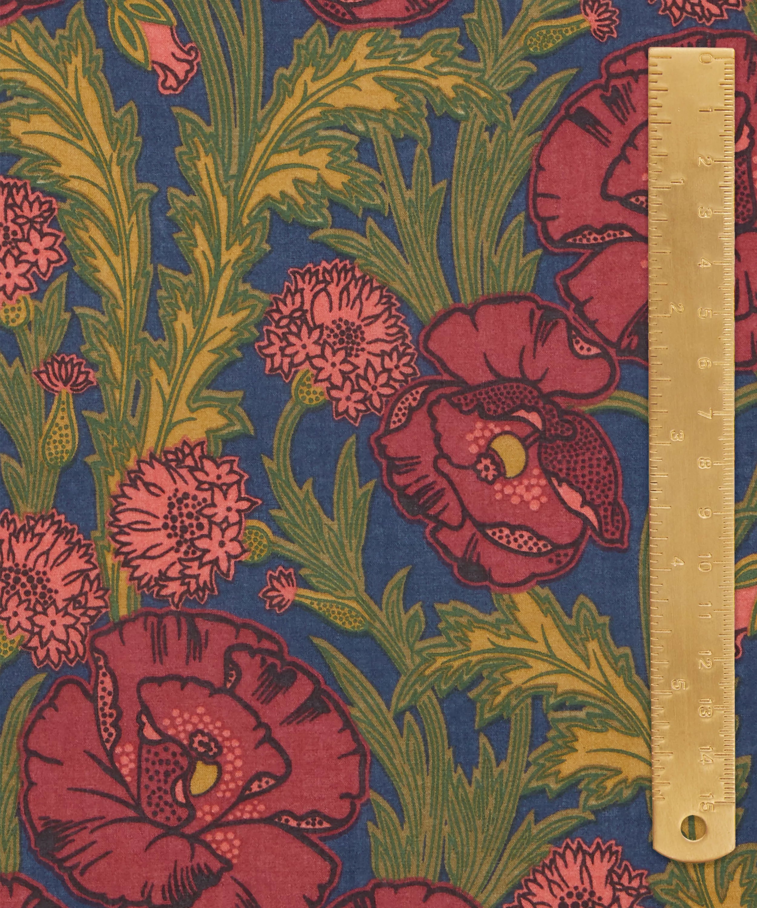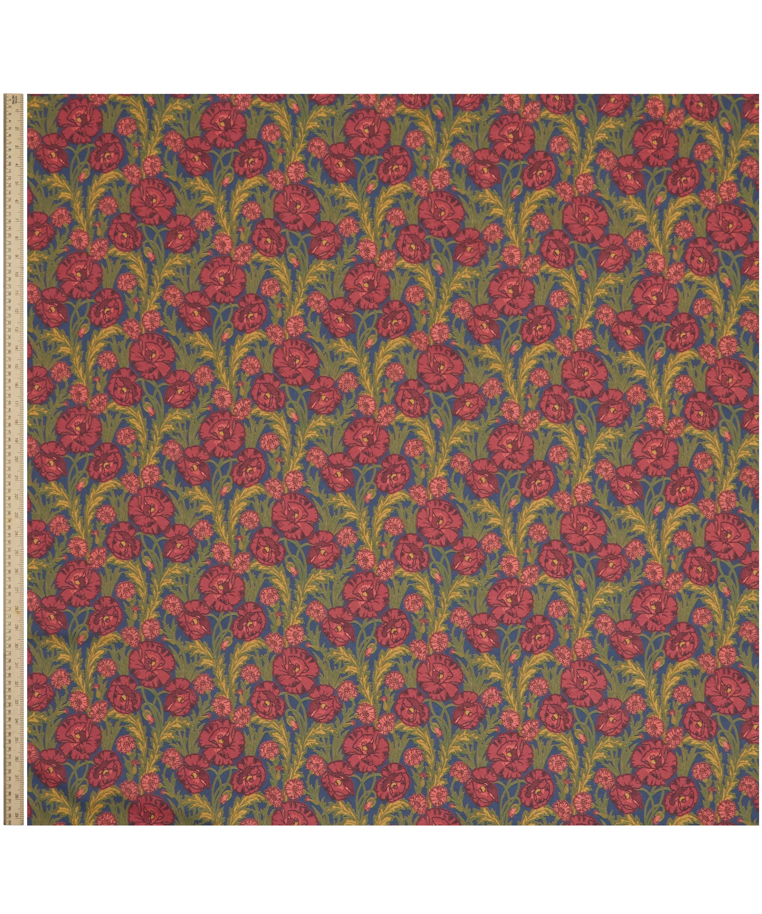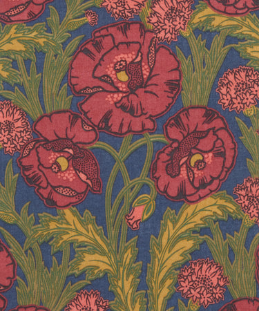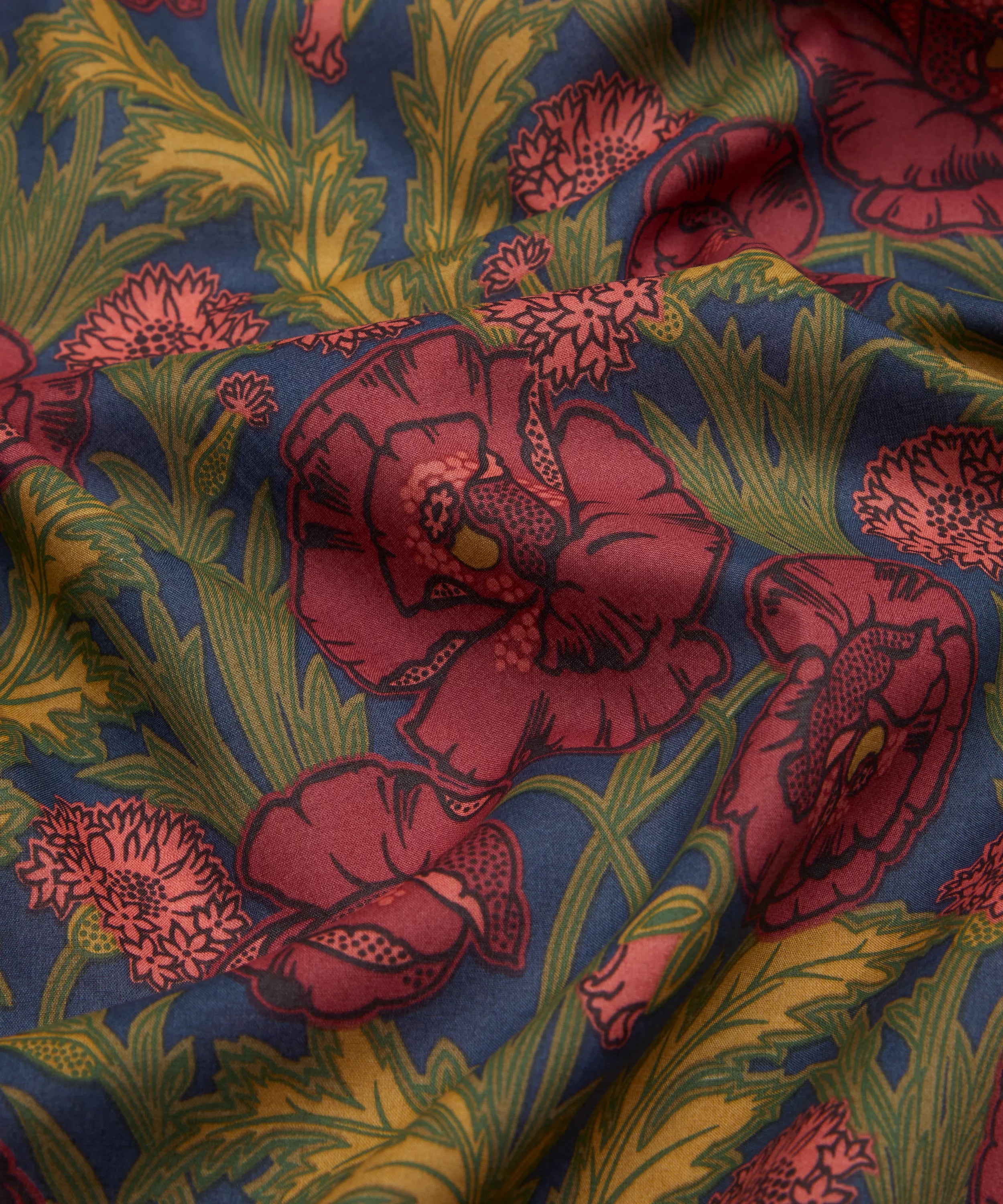 Maud’s Posy is a tribute to one of Liberty’s signature flowers- the iconic poppy. Hand-painted in the early 1980s, this sophisticated botanical is a contemporary rendition of a typical Art Nouveau design. Elegant trailing poppies, winding foliage and pops of stylised carnations are emphasised by richly coloured grounds and bold outlines. This print is part of the Floral Library narrative of the AW24 collection, which studies the subject through the Botanist’s eye, cataloguing and exploring an assortment of species as well as a being a celebration of key florals throughout Liberty’s history.
