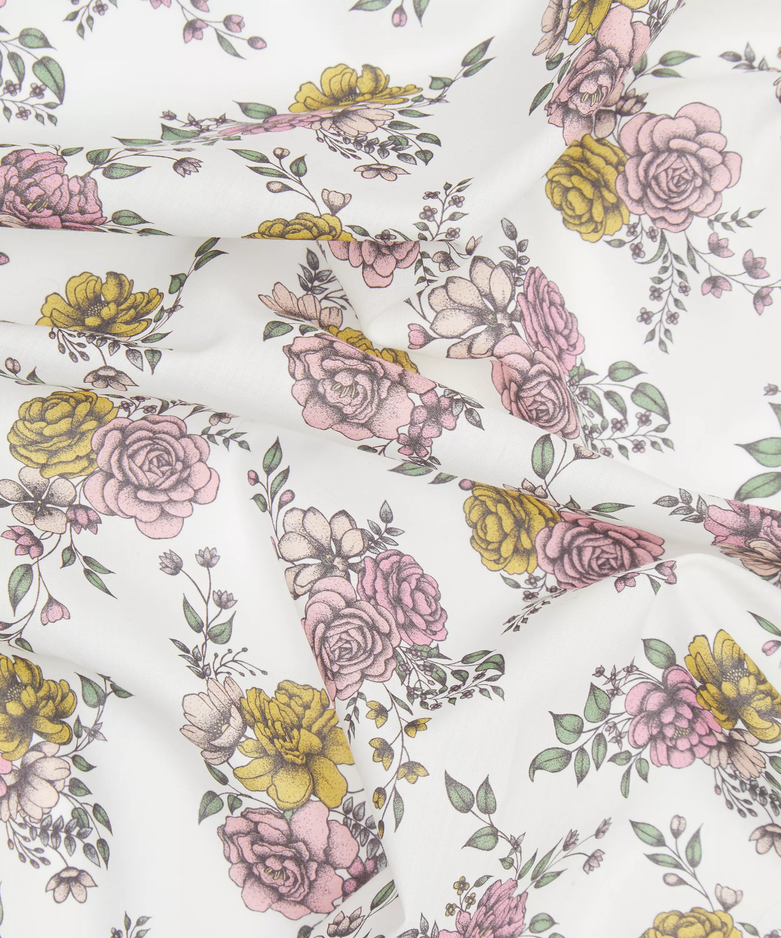 Hand-drawn in Liberty design studio using fine liner pen, Inked Rose is a tattoo-style trailing floral print. Evocative of the intricate needle impressions in tattoo art, its rose and peony bouquets appear to float across the fabric, beautifully scattered in a multi-directional repeat.