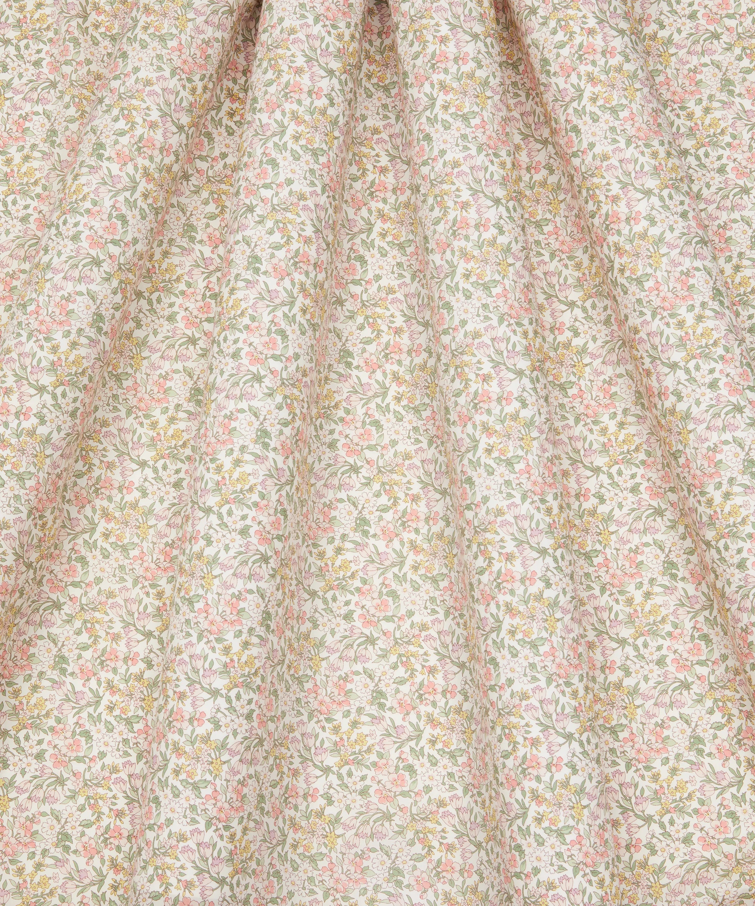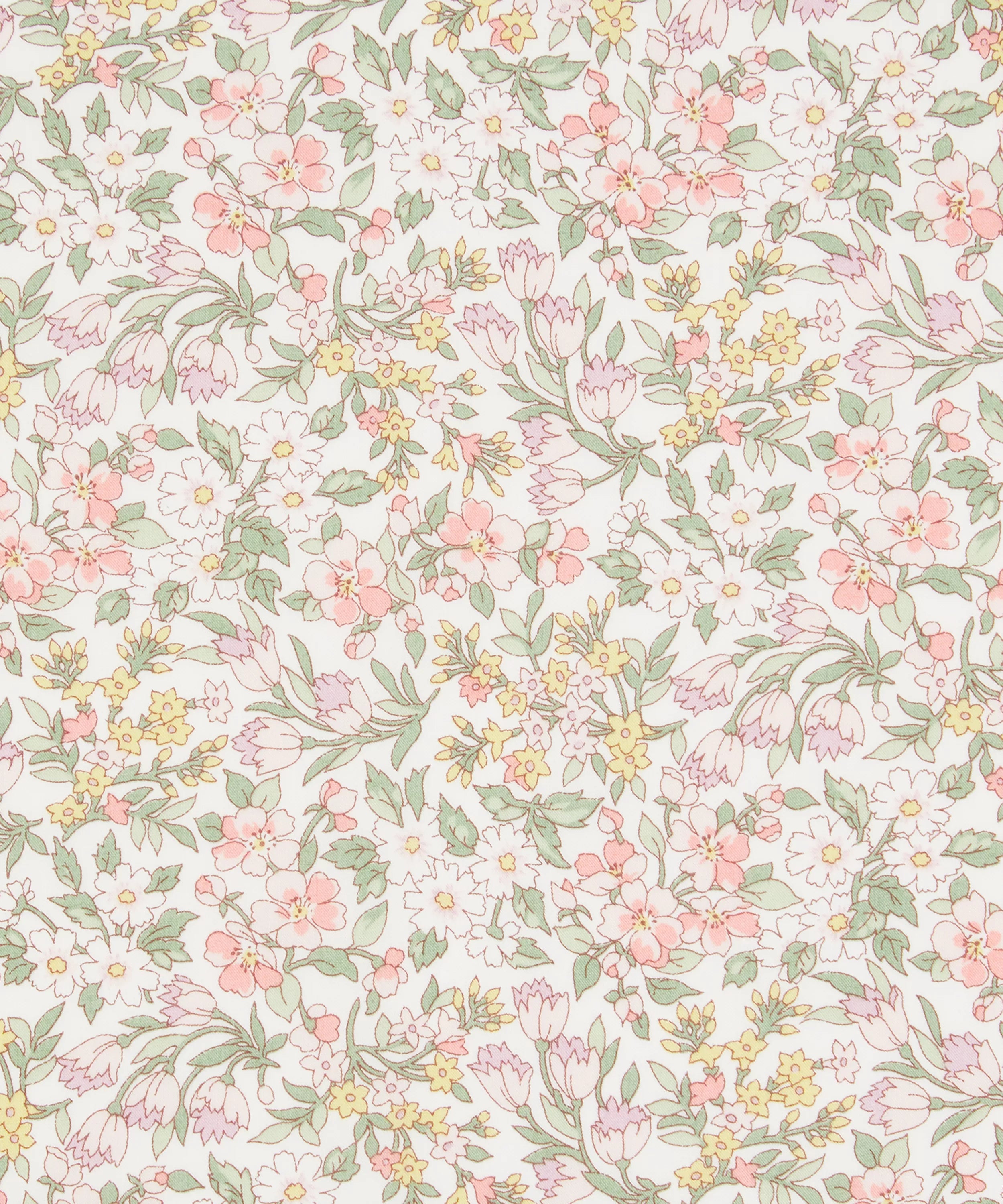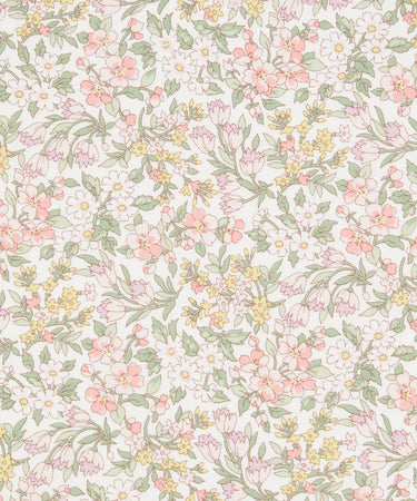 Inspired by a hand-painted artwork from the Liberty archive dating back to 1989, Nazanin features a delicate floral posy. This composition weaves together a tapestry of meadow blooms, including daisies, roses, and bell flowers, creating a delightful dance of romantic, Regency-style botanicals.