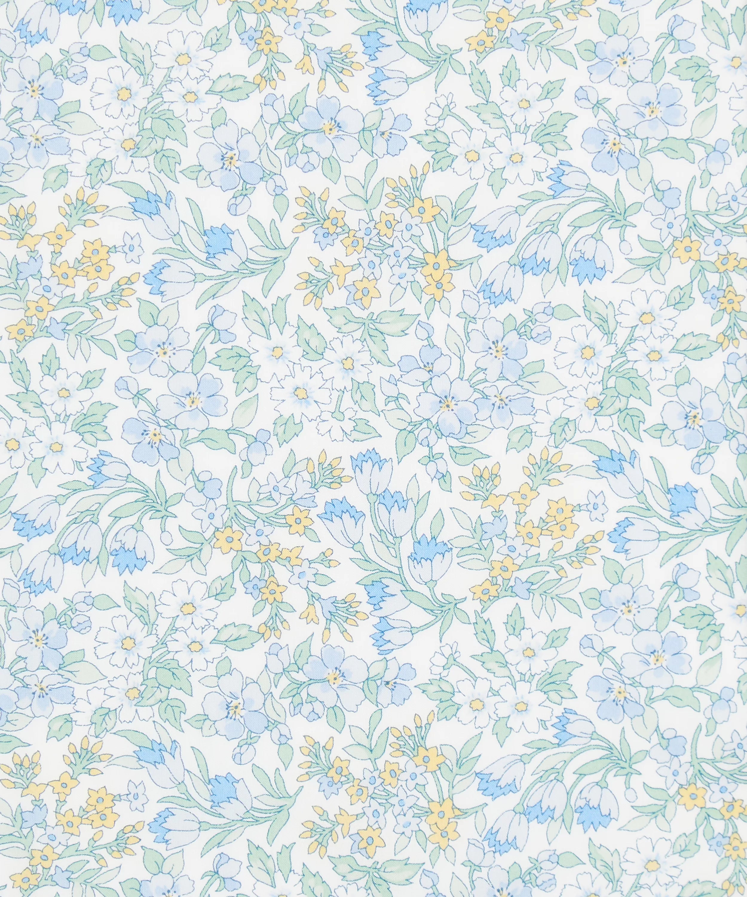 Inspired by a hand-painted artwork from the Liberty archive dating back to 1989, Nazanin features a delicate floral posy. This composition weaves together a tapestry of meadow blooms, including daisies, roses, and bell flowers, creating a delightful dance of romantic, Regency-style botanicals.