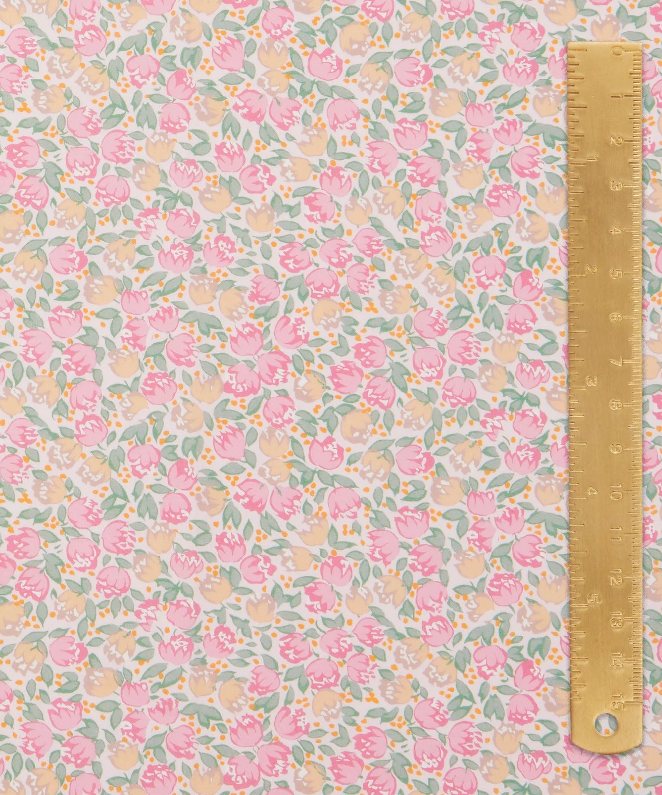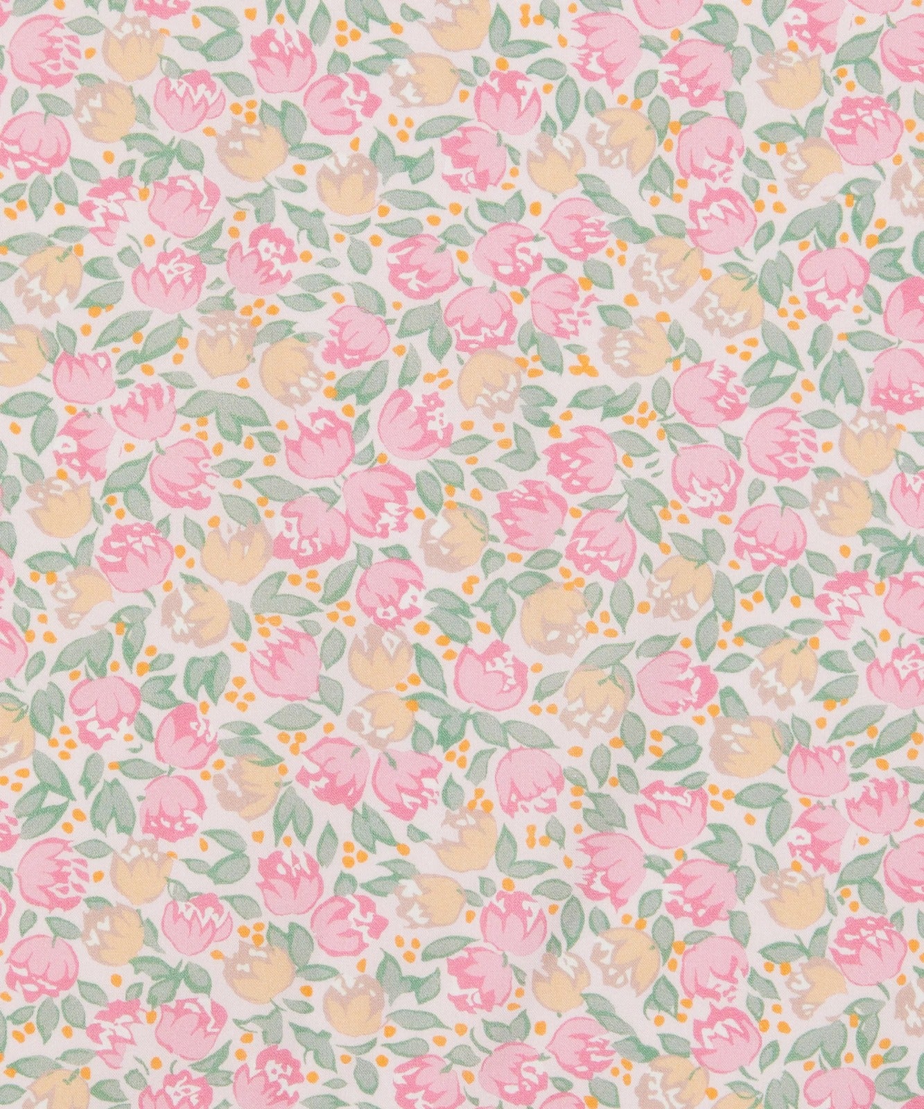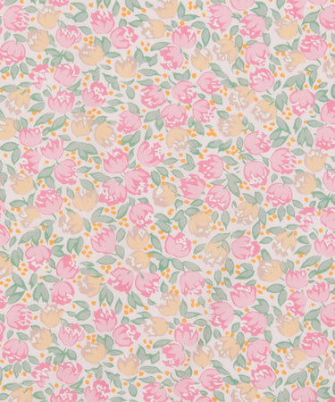 Peppered with tiny tulip-shaped flowers and leaves, Dottie Lottie presents a dense, multidirectional repeat. Originating from a 1989 gouache artwork, this simple and versatile botanical is characterised by playful shapes reminiscent of collaged cutouts. A backdrop of tiny polka dots enhances the composition, adding an extra layer of whimsical charm and dimension.